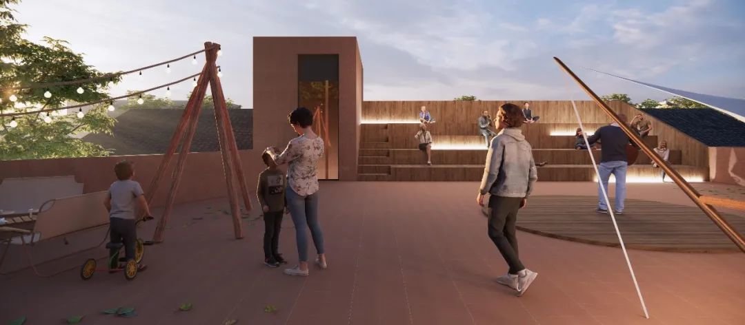 值得一提的是,设计在村口位置巧妙地运用半围合布局,把更多功能空间归还给村民,其中以“村长咖啡店”为代表的空间不仅给村民日常休闲和游客参观拍照创造了舒适的场景,也成为一个可以承载线下讲座、研学交流等多种活动的公共场域。