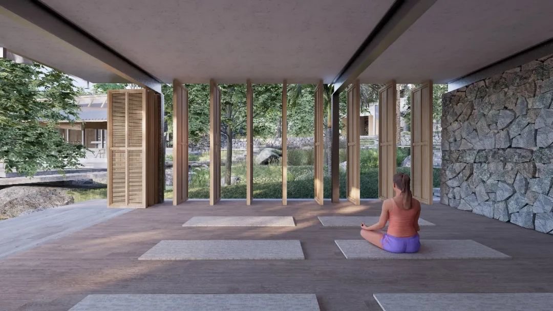 动区集合了研学教室、研学农地及田野课堂、民宿公区、大榕树篝火营地四大核心功能;静区则结合了客房区、林下探险区、农耕文化展示及瞭望平台三大核心功能。