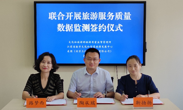 文化和旅游部旅游质量监督管理所副所长陶从瑞、江苏省数字文化和智慧旅游发展中心副主任靳扬扬、美团政企合作中心总经理路梦西作为代表共同签署合作协议。