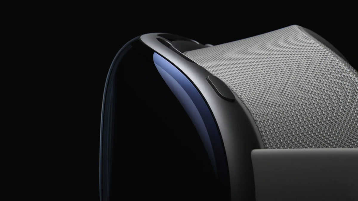 机身的左上方是一个物理按键,而右侧则是旋钮,这两个硬件也很好地融入了机身的曲线之中,并不显得突兀,也算是很好地发挥了在 AirPods Max 和 Apple Watch 等产品上的设计经验了。通过调整数码旋钮,用户还可在空间环境控制现实和体验的沉浸程度,算是一种更方便直观的交互方式了。