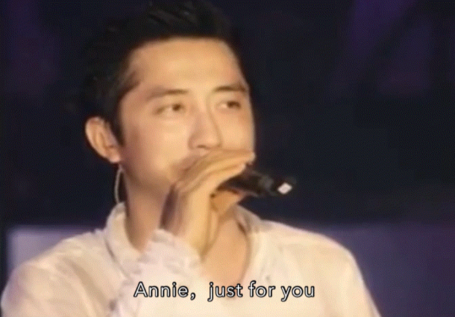 他对着伊能静的方向大喊,“Annie(伊能静英文名),Just for you”。