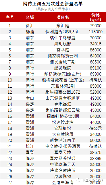 6月6日,网传上海五批次部分新盘价格已过会,即将入市。