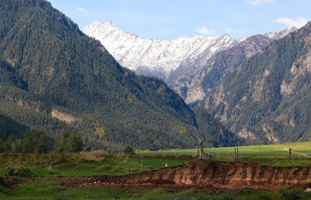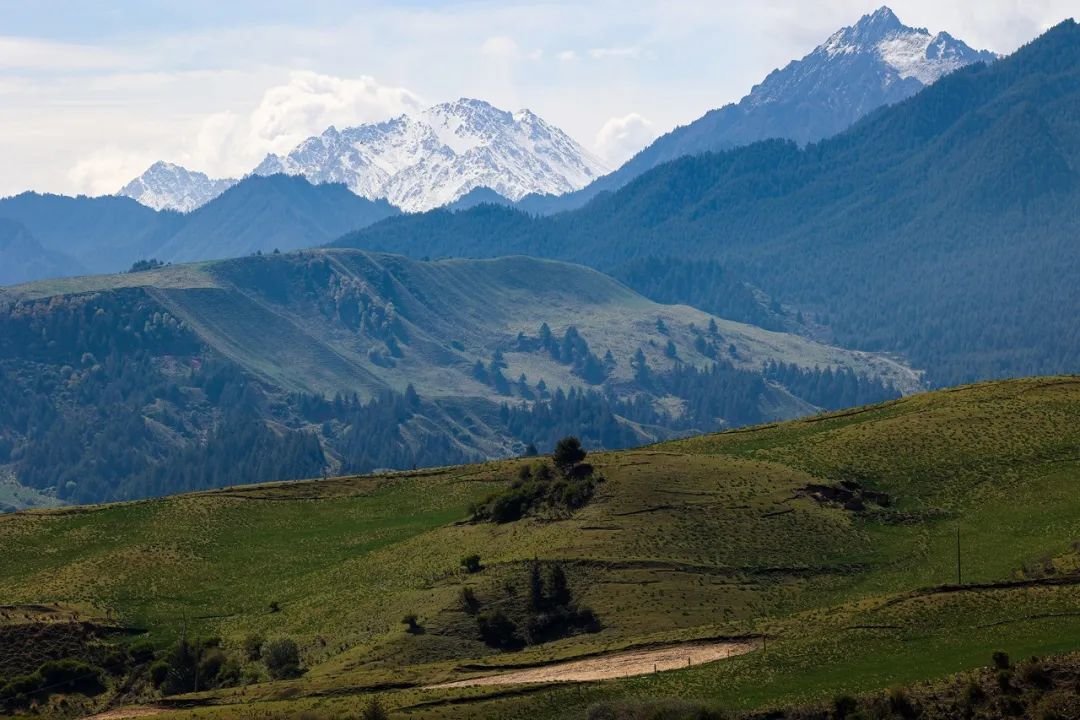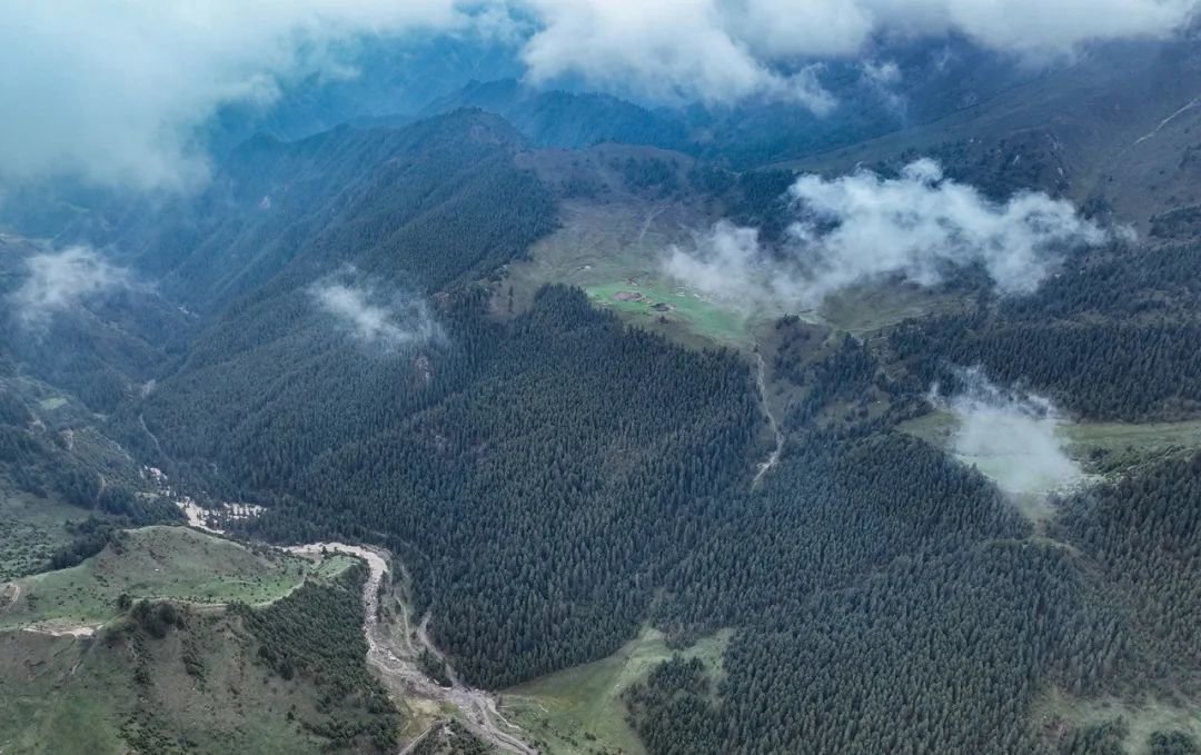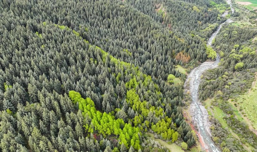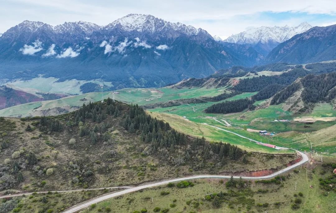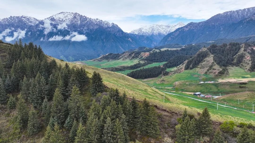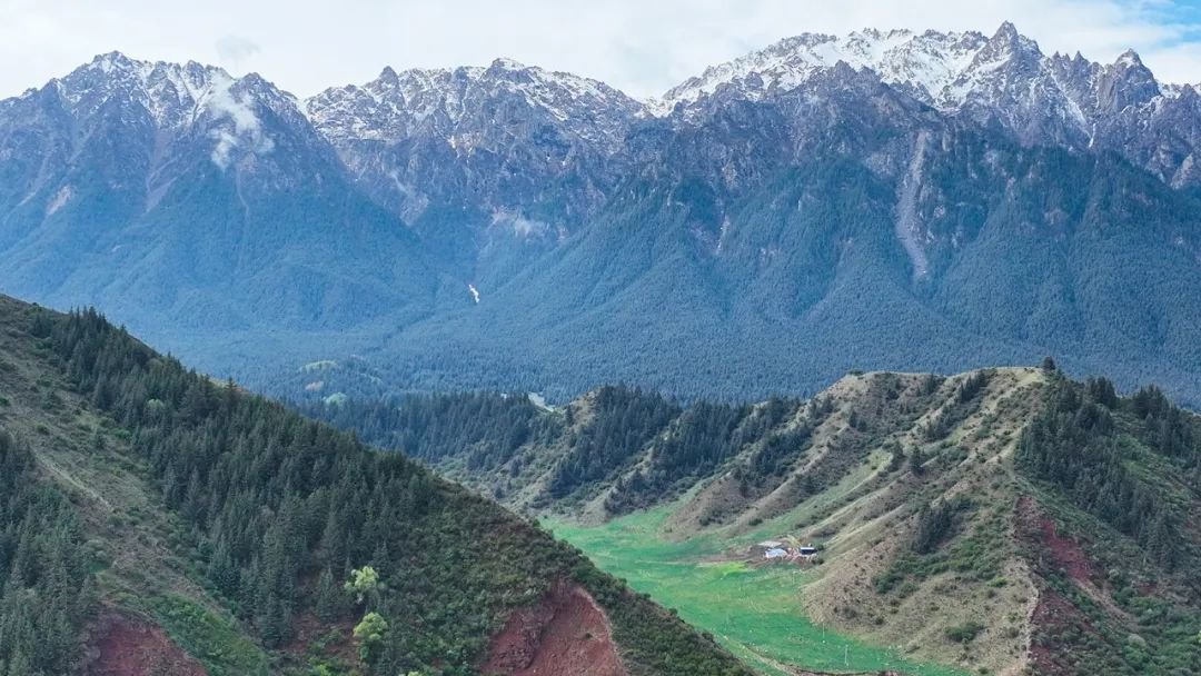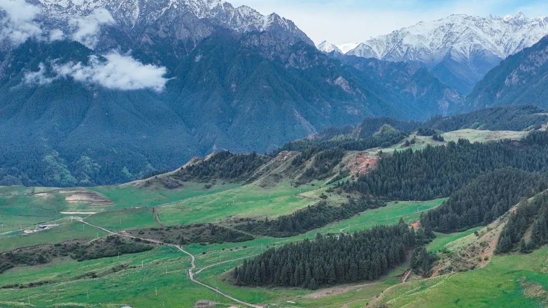 6月5日,祁连山国家公园甘肃省张掖段肃南片区,在初夏几场连绵细雨后,祁连山山顶白雪皑皑、林木森森,山下草原葱郁,河流蜿蜒而过,好一派雄浑壮阔又俏丽多彩的山野风光。