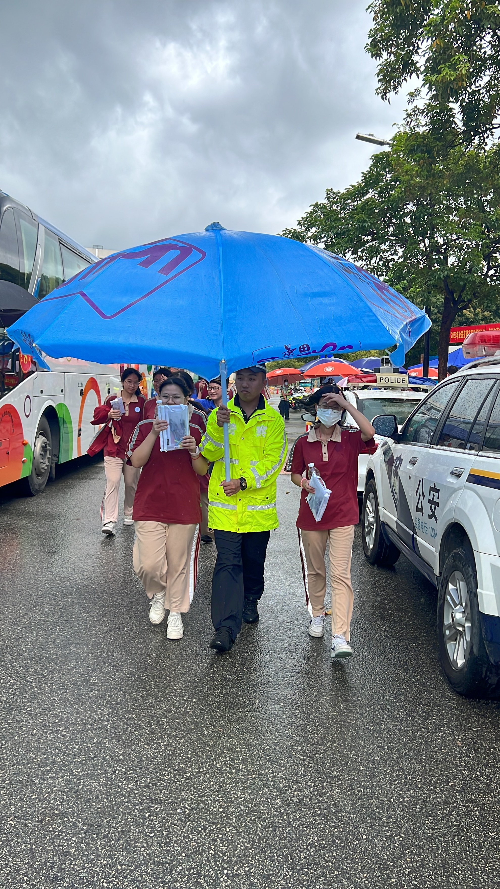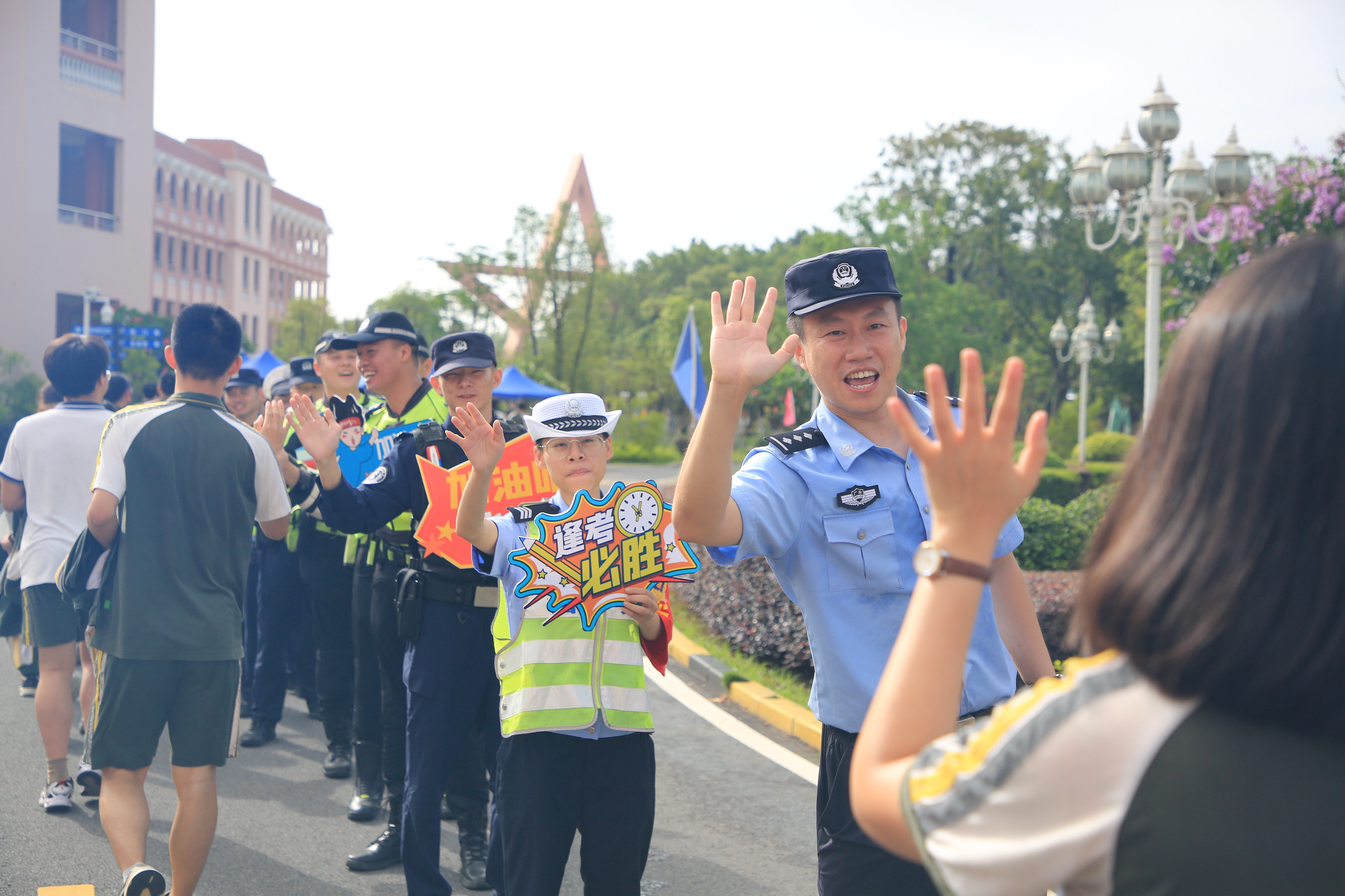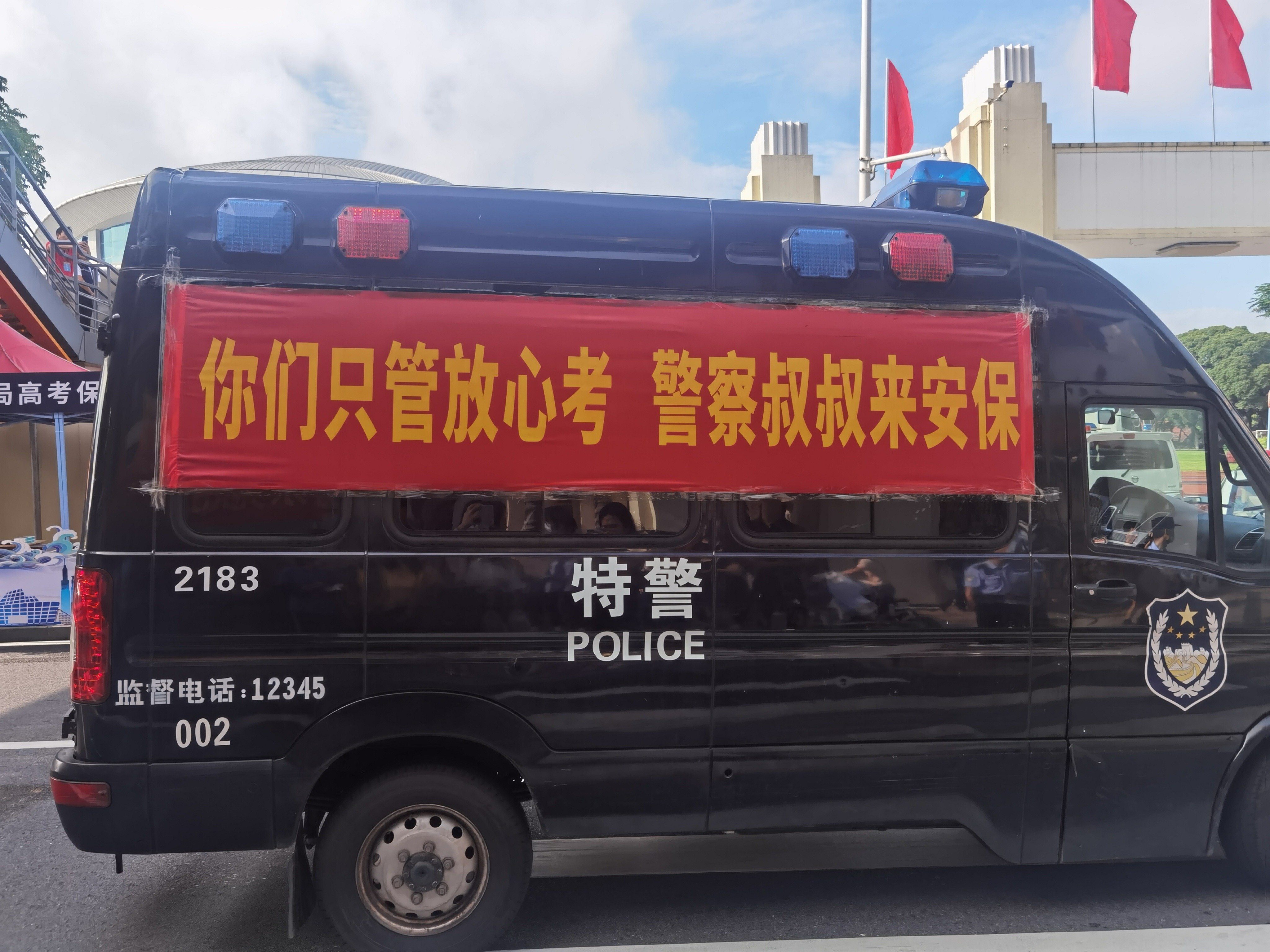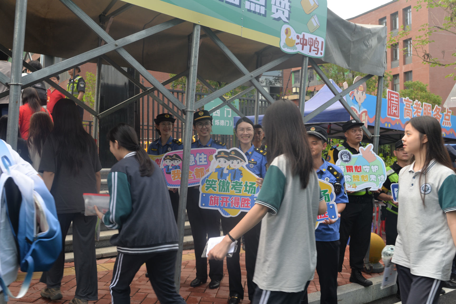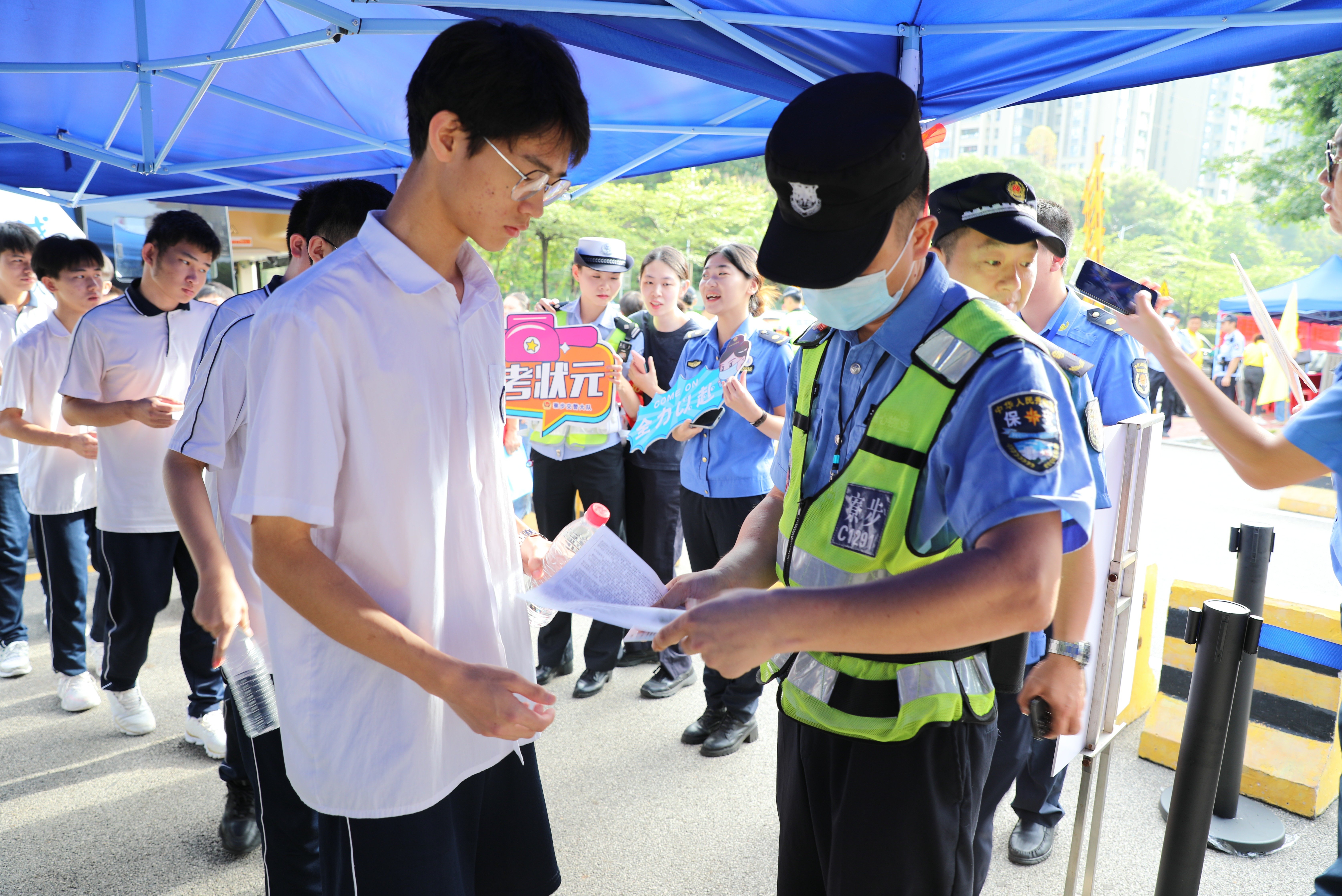 在考点现场,还有东莞市公安系统、东莞市城管系统等设立的“爱心助考站”,为考生助威打气、提供急需物资。