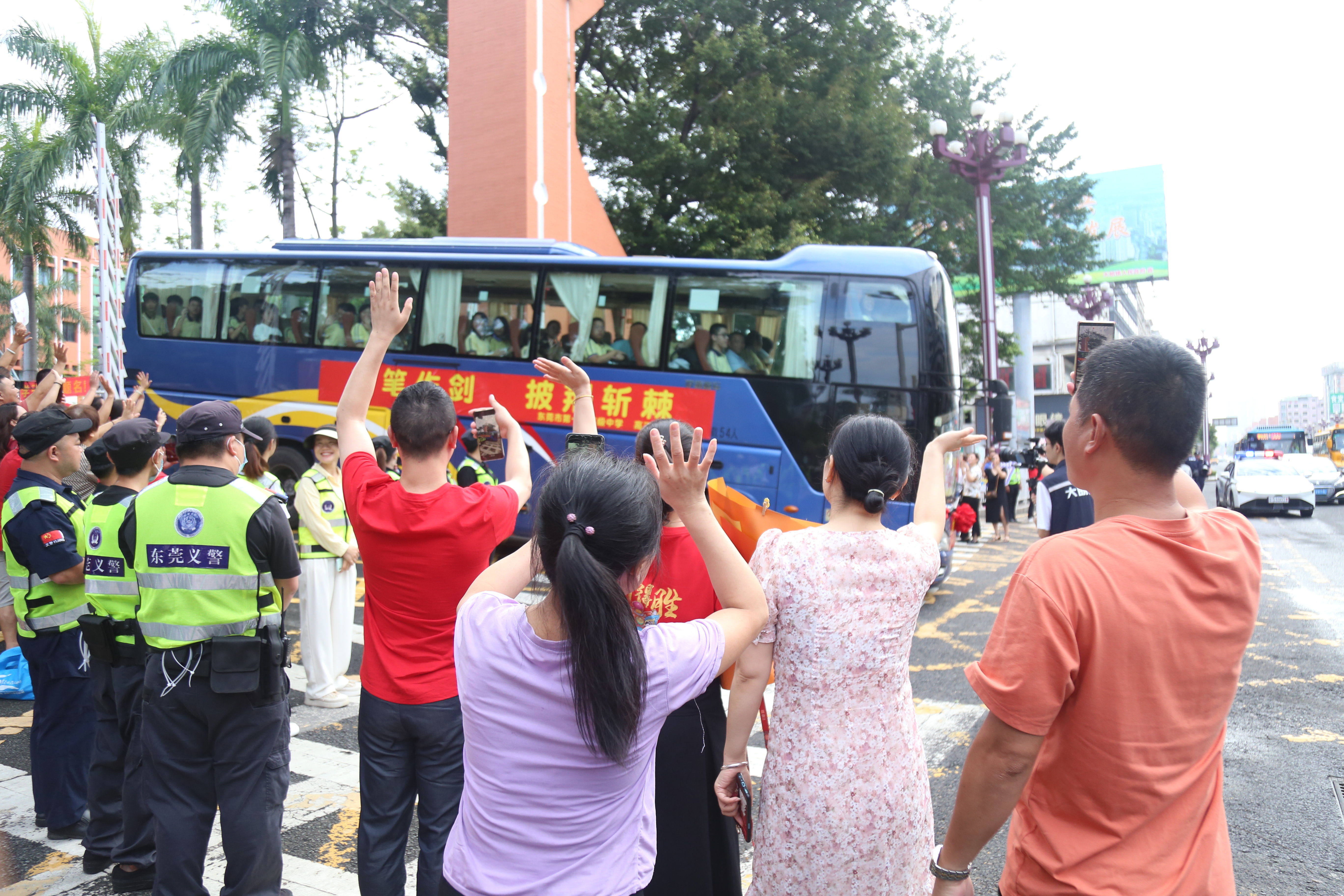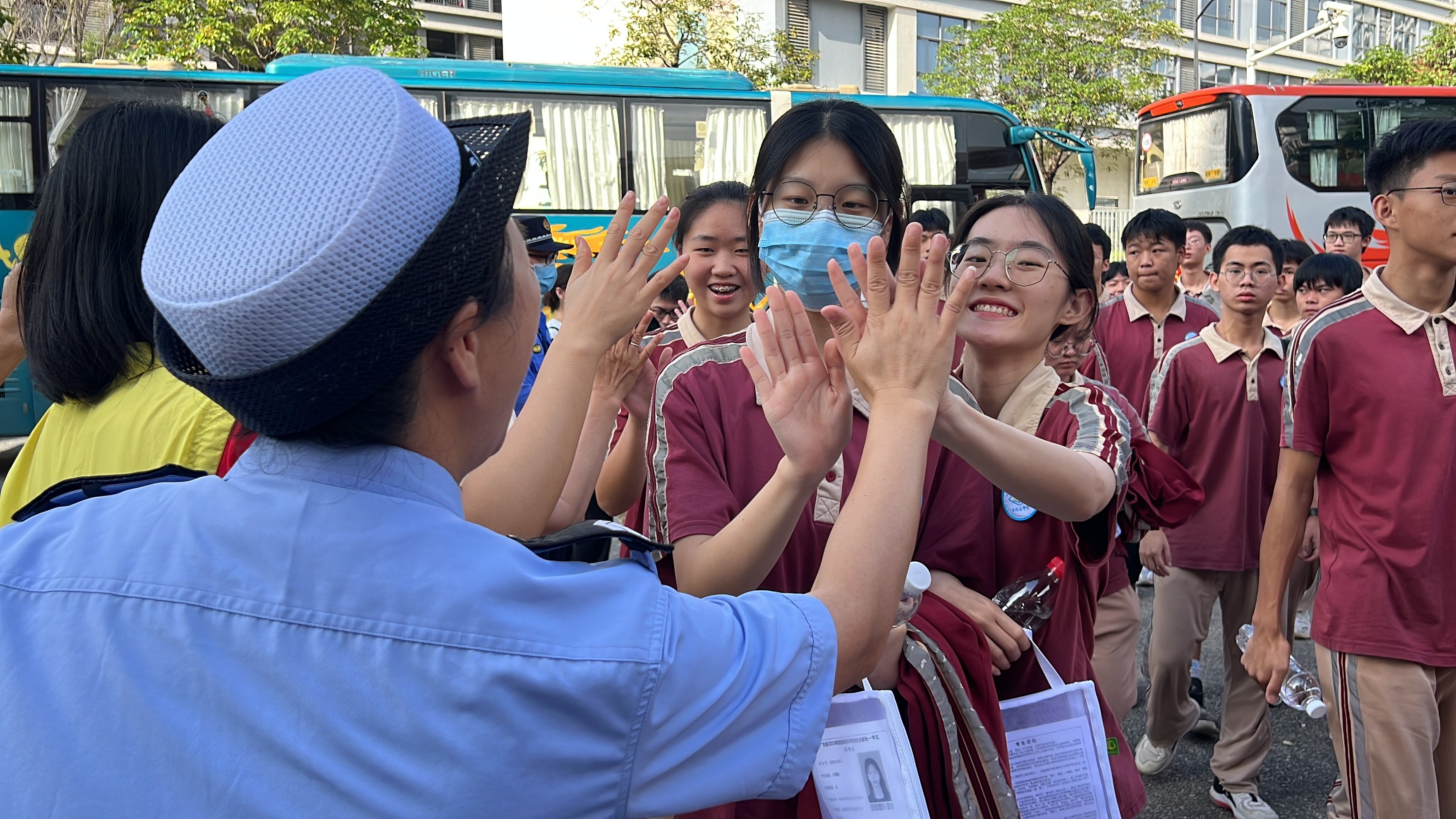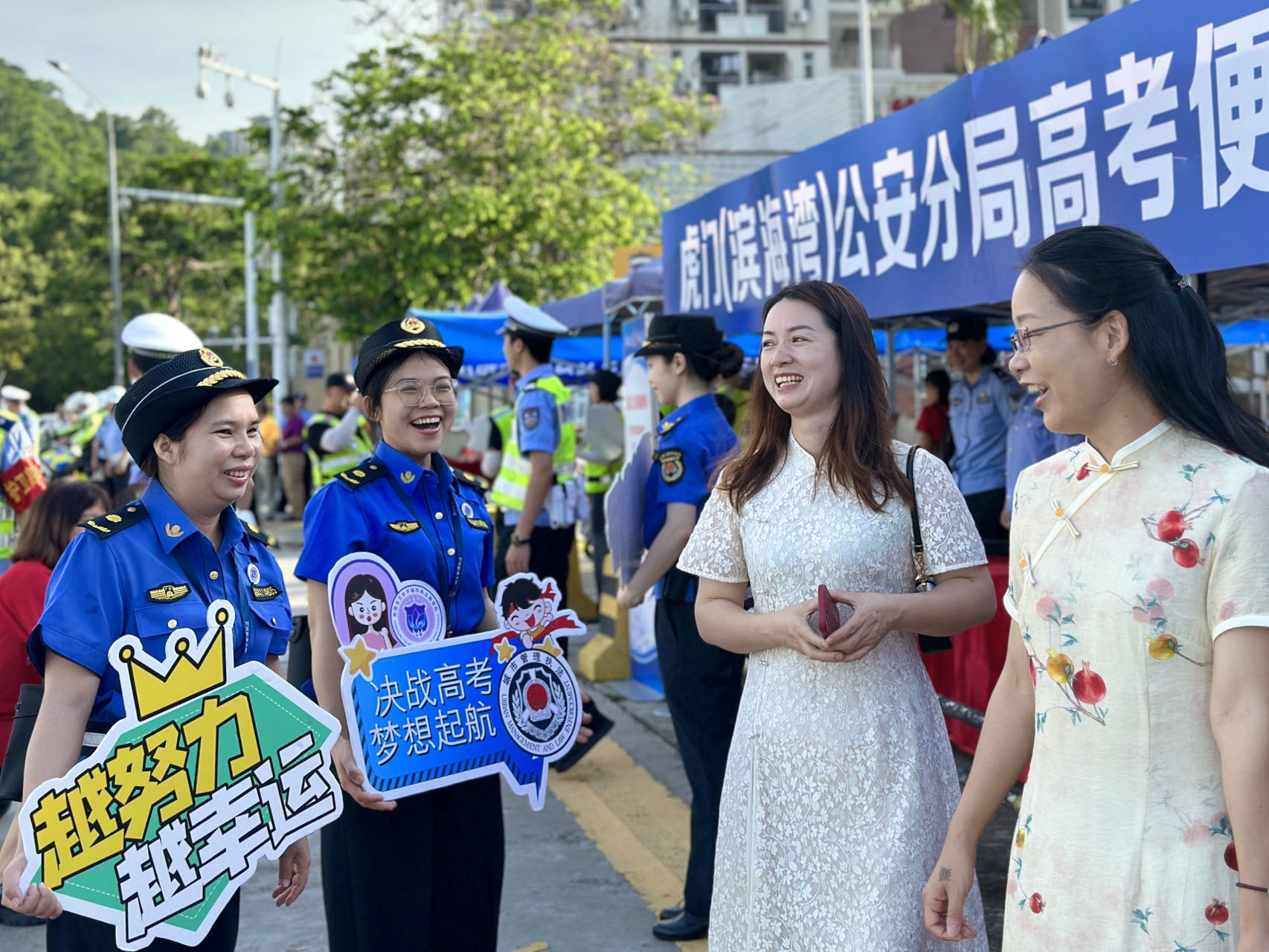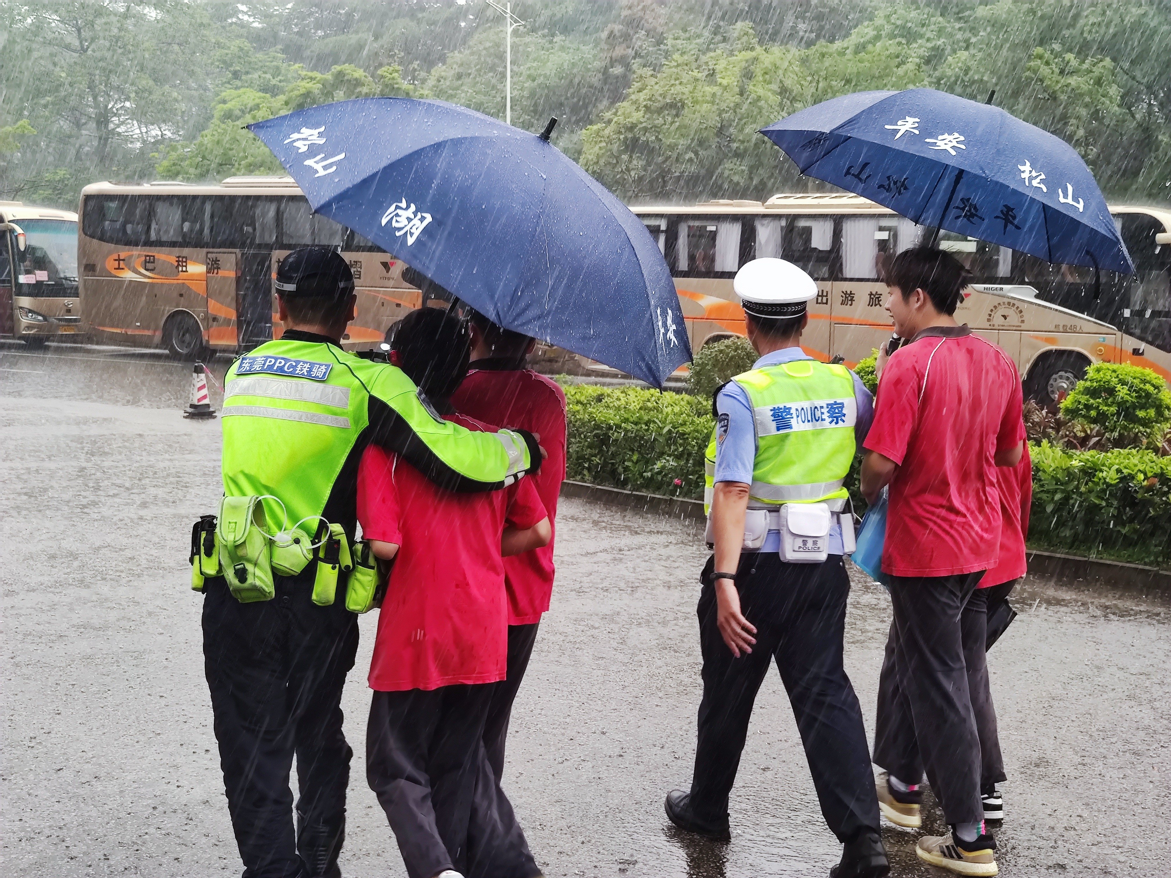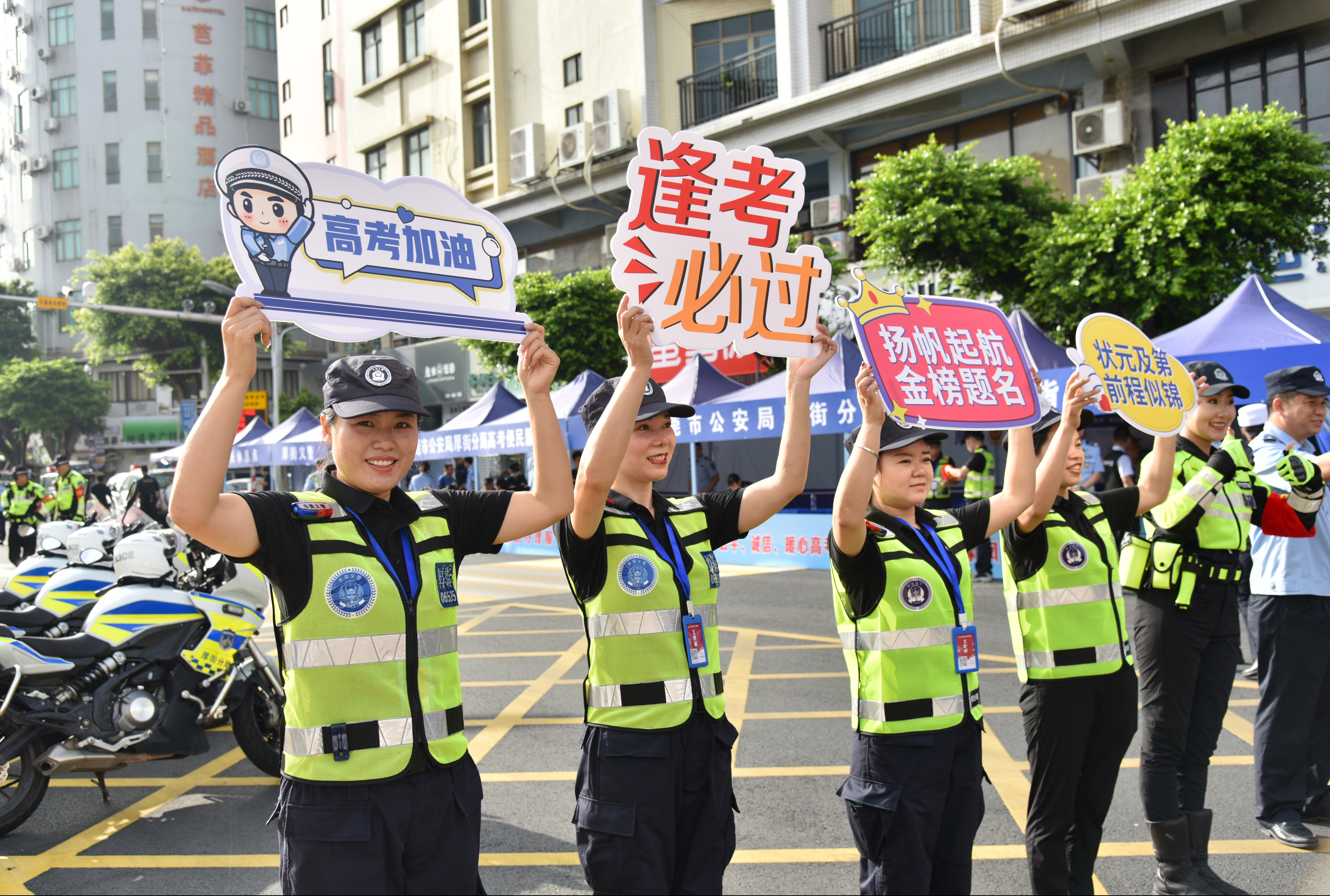 在考点现场,还有东莞市公安系统、东莞市城管系统等设立的“爱心助考站”,为考生助威打气、提供急需物资。