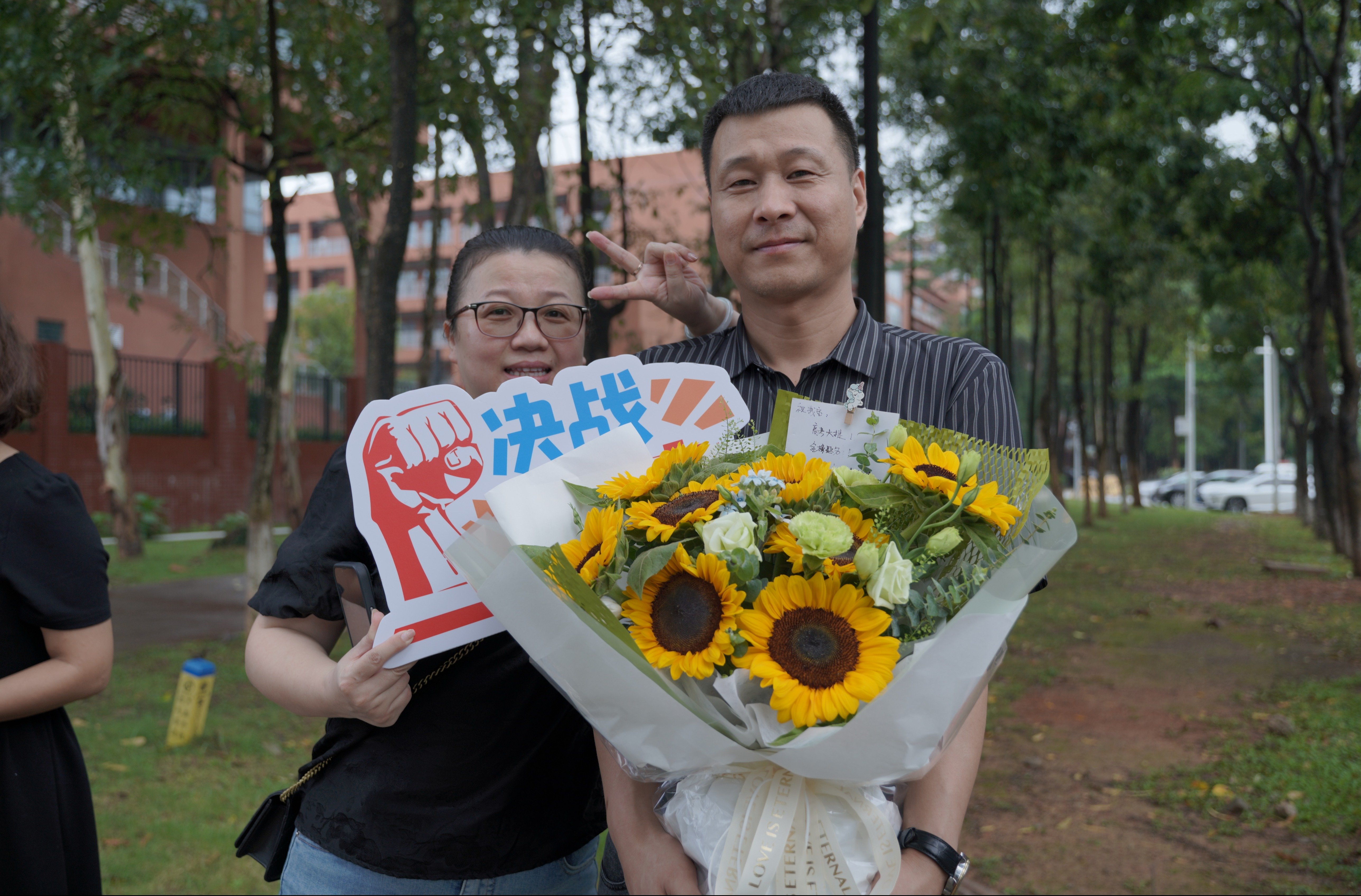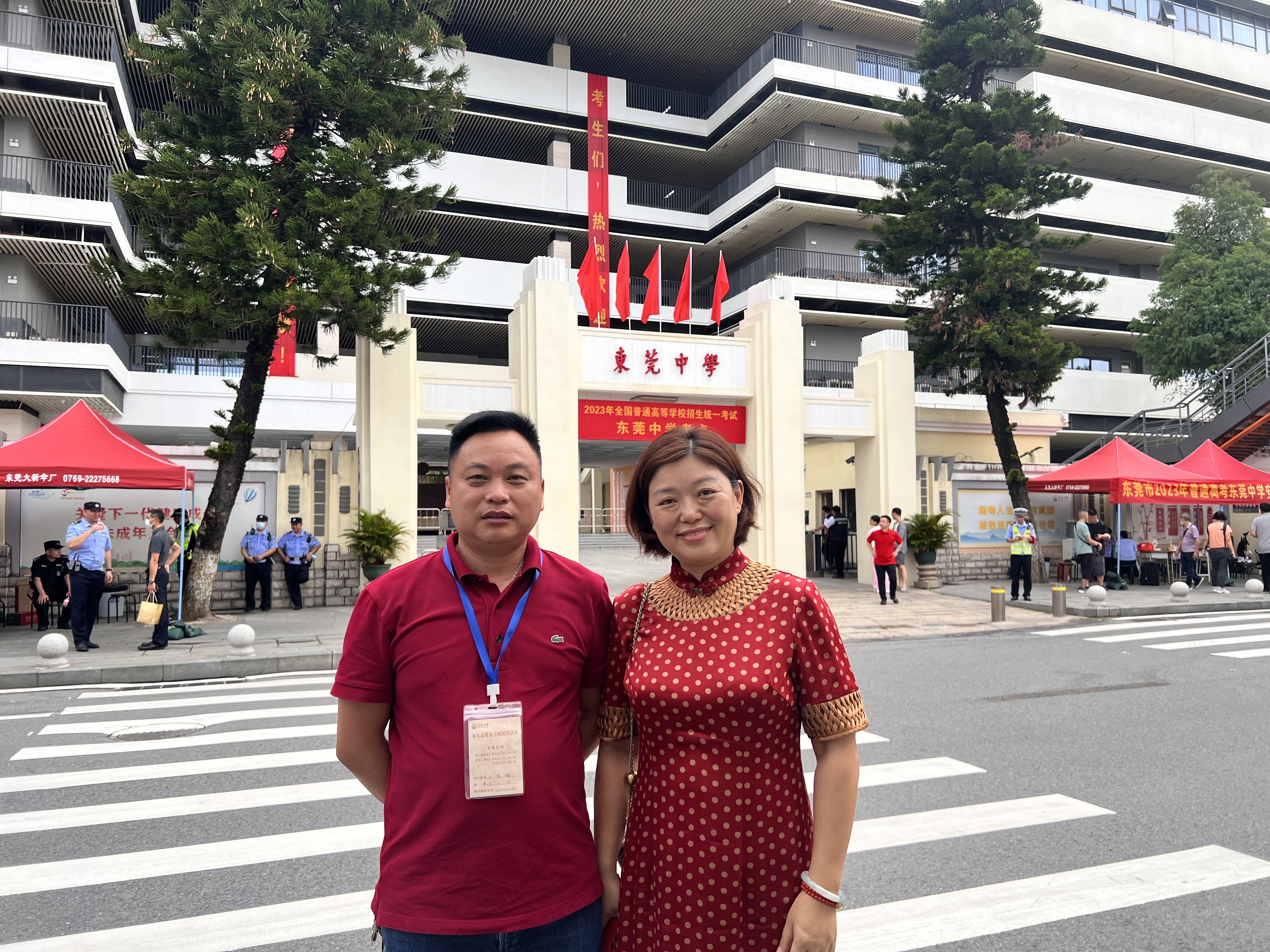 他们告诉凤凰网广东,这身衣服寓意着“好运连连”“旗开得胜”,东莞中学的家长吴女士还补充,这是三年前就跟孩子约定好的,“妈妈三年后一定会穿着红旗袍去给你加油!”