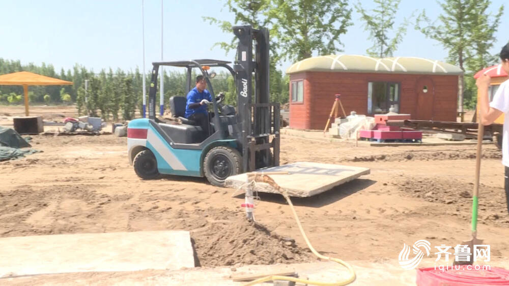 走进平原县山东盛堡特色小镇二期项目现场,记者看到,工人们正在对游乐场地面进行花砖铺设,一派忙碌的场景。