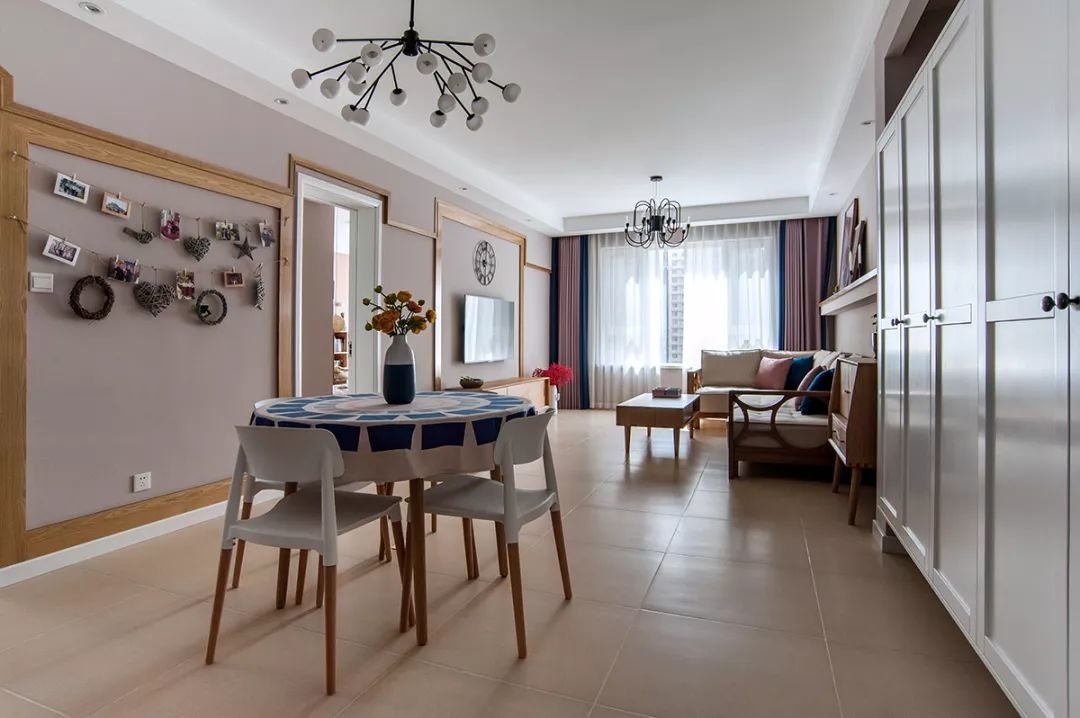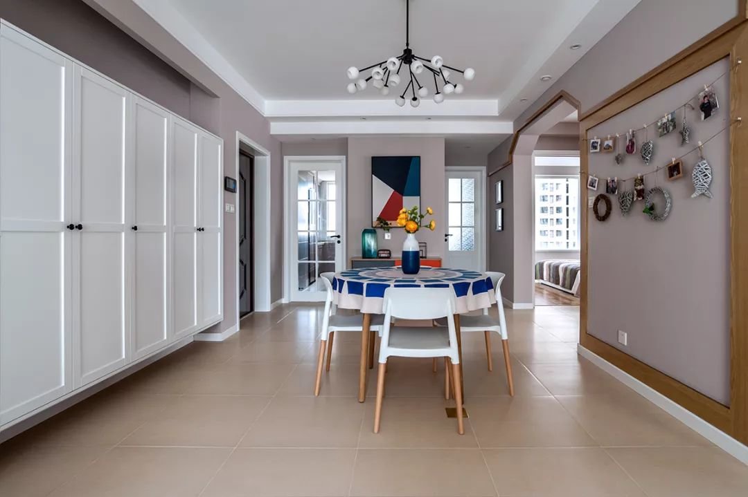 ▲餐厅与客厅的空间氛围保持一致的风格,餐厅背景墙以木饰面边框造型,中间挂一组照片墙,让空间充满温馨自然的惬意,用餐更加有家的温馨气息。