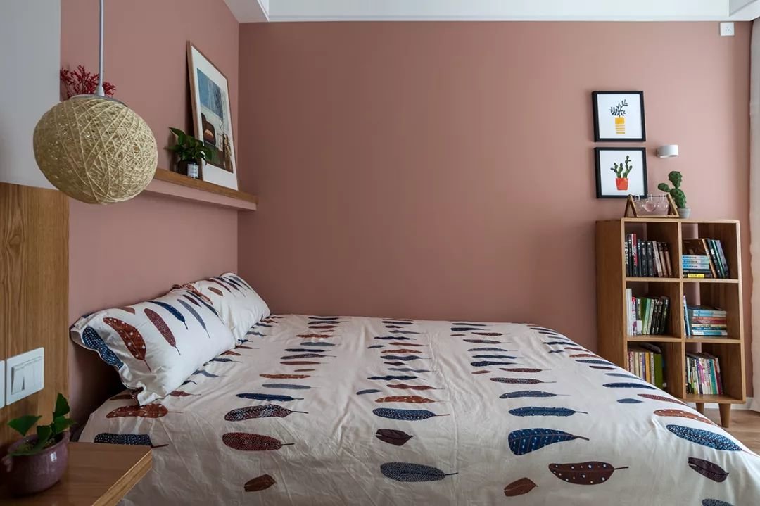 ▲在这个主卧室中,粉红色被运用得非常巧妙,它为房间注入了一份柔和和温馨,让人感到轻松和愉悦。床头搭配的编织吊灯,不仅起到了照明的作用,还为整个空间增添了一份优雅和浪漫。