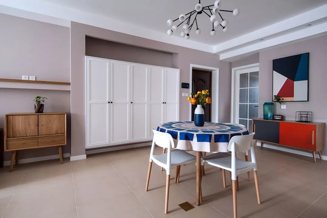 ▲餐厅侧边靠近过道安装一个入墙式的定制柜,提供了实用方便的储物收纳空间。