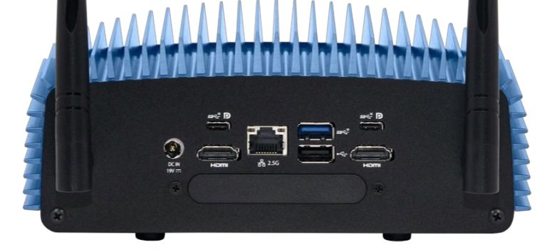 I/O接口方面,Arena Canyon Porcoolpine提供了2个HDMI 2.1、2个雷电4、1个2.5G网口、3个USB 3.2 Type-A、1个USB 2.0 Type-A和1个3.5mm音频接口。另外,它还拥有一个扩展卡,可为设备多加一个2.5G网口。它的电源接口是DC圆口,输入是19V/120W。虽然从图片上,这台设备带有两根显眼的天线,但并不标配无线网卡,用户得加35美元(约合人民币249元)选装AX211才能获得该功能,带有vPro功能的AX211是45美元(约合人民币320元)。