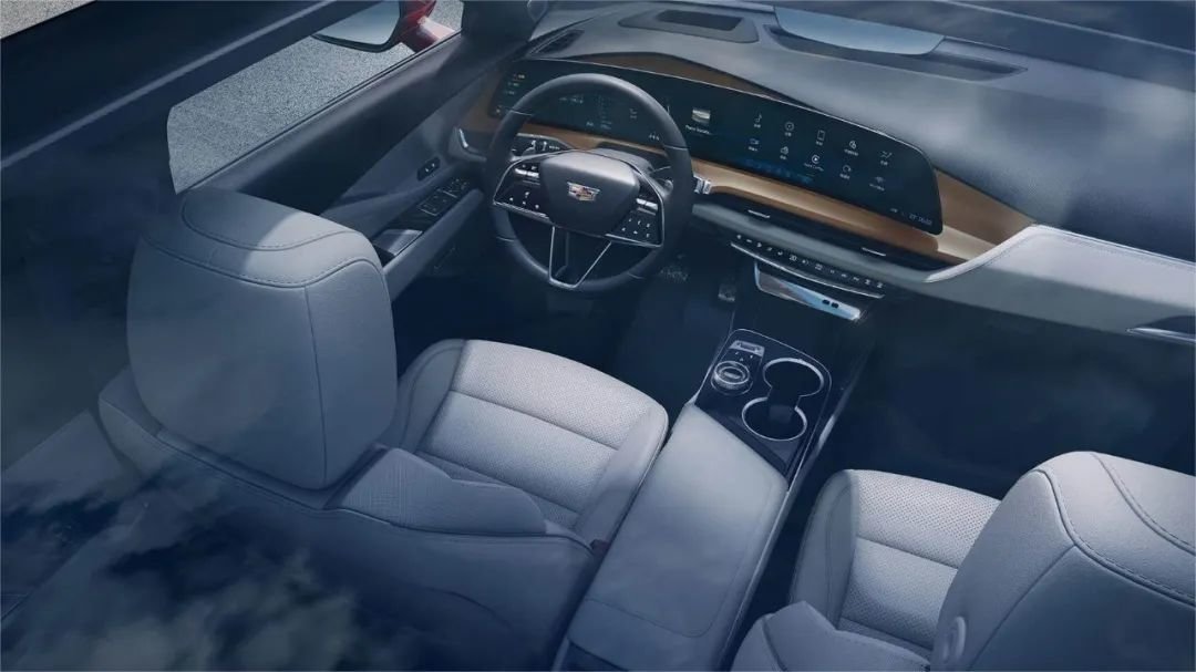 车内部分,凯迪拉克GT4的环抱式座舱内最引人瞩目的就是中控台上全系标配的33英寸的环幕式超视网膜屏。除此之外,座舱内采用的大量镀铬、拉丝铝板,以及PiPing缝线等工艺也营造出了不错的高级感。
