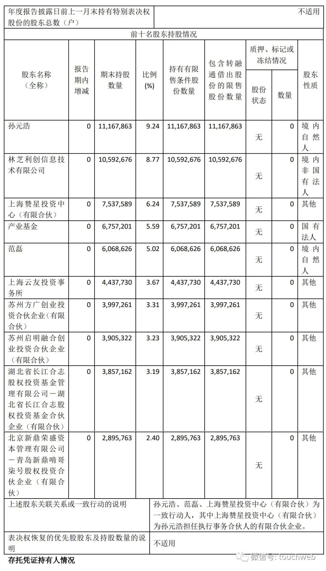 其中,孙元浩、范磊、上海赞星投资中心(有限合伙)为一致行动人,其中上海赞星投资中心(有限合伙)为孙元浩担任执行事务合伙人的有限合伙企业。