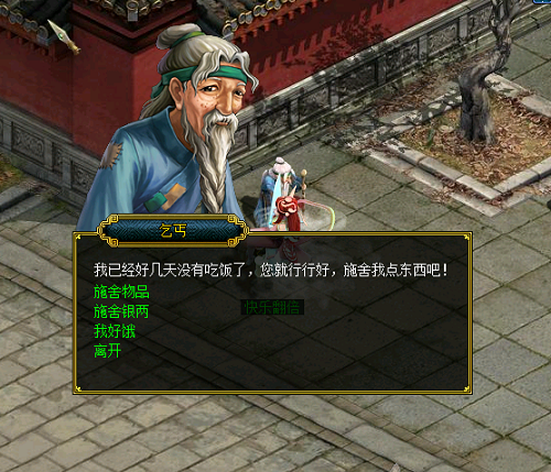 自己享福不忘兄弟,仗义的乞丐会想到同城的其他两个乞丐,也希望得到你的施舍。其中一个乞丐好酒,一个乞丐爱财,道友需要根据对应乞丐的爱好施舍物品。