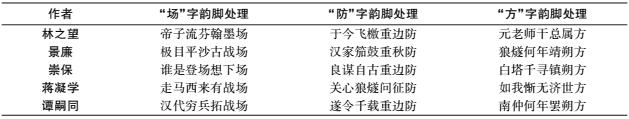 从表1可以清晰看出,五人在处理“场”字韵脚时,三人使用了极具边疆色彩的“战场”;处理“防”字韵脚时,三人用“边防”,一人用“秋防”、一人用“征防”,五人所用词汇全部与边疆军事活动密切相关;处理“方”字韵脚时,三人使用了“朔方”、一人使用单字词“方”描述治军方略(师干)的严整,四人同样都在谈论边疆。彼时任职兰州的大吏多经历同治陕甘战乱与收复新疆之役,观河诗作中充斥有关边疆军务的感慨出于其真实经历,但作为后来人的谭嗣同本可以有更超然的态度,何以仍踵故辙?无他,苦于和韵之难而已。著名的《沧浪诗话》直云“和韵最害人诗”,限定韵脚使得遣词造句与命篇立意趋于雷同,以致顾炎武批评道:“文或未顺则曰牵于韵耳,意或未满则曰束于韵耳。”清末民初的旧诗创作者中,有不少人对和韵诗的艺术价值抱以怀疑;但和韵诗作为彼时官场应酬中的常见方式之一,不可避免构成拂云楼观河作品的主体。对多数文才平庸者而言,在边臣心态驱使下固然不免拥抱“边塞视角”,而即便不抱边臣心态却很难摆脱“边塞书写”——这是文体强加的桎梏,在此形式决定内容。