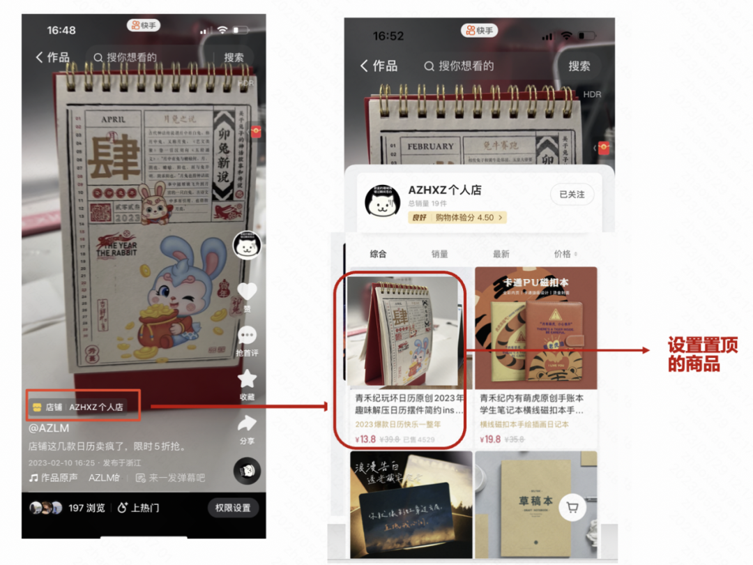 用户侧的体验和带货短视频没有太多差异,只不过点击链接是直接进入商家店铺,而非单一商品页面。