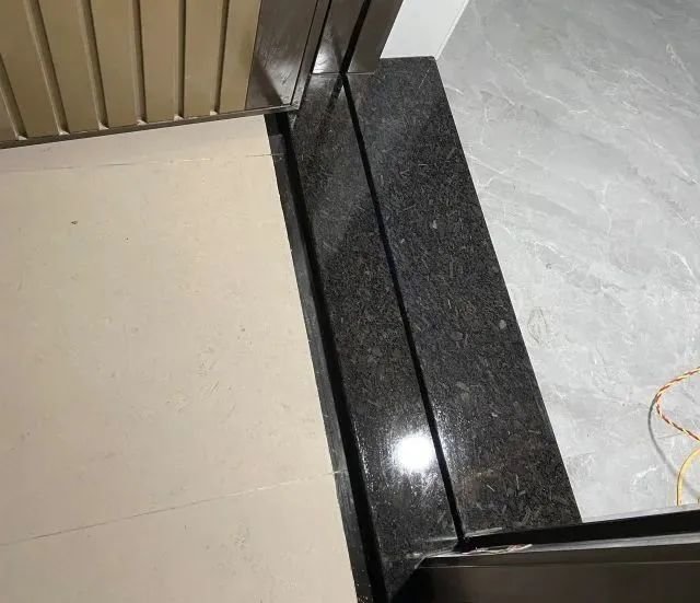 大门处是一定要装门槛石的,因为室内-室外之间,会有一个高度差,如果不装门槛石的话,瓷砖贴到交界处就无法收口,会出现瓷砖侧边外露;如果高度差较大,甚至会有水泥砂浆外露的情况。