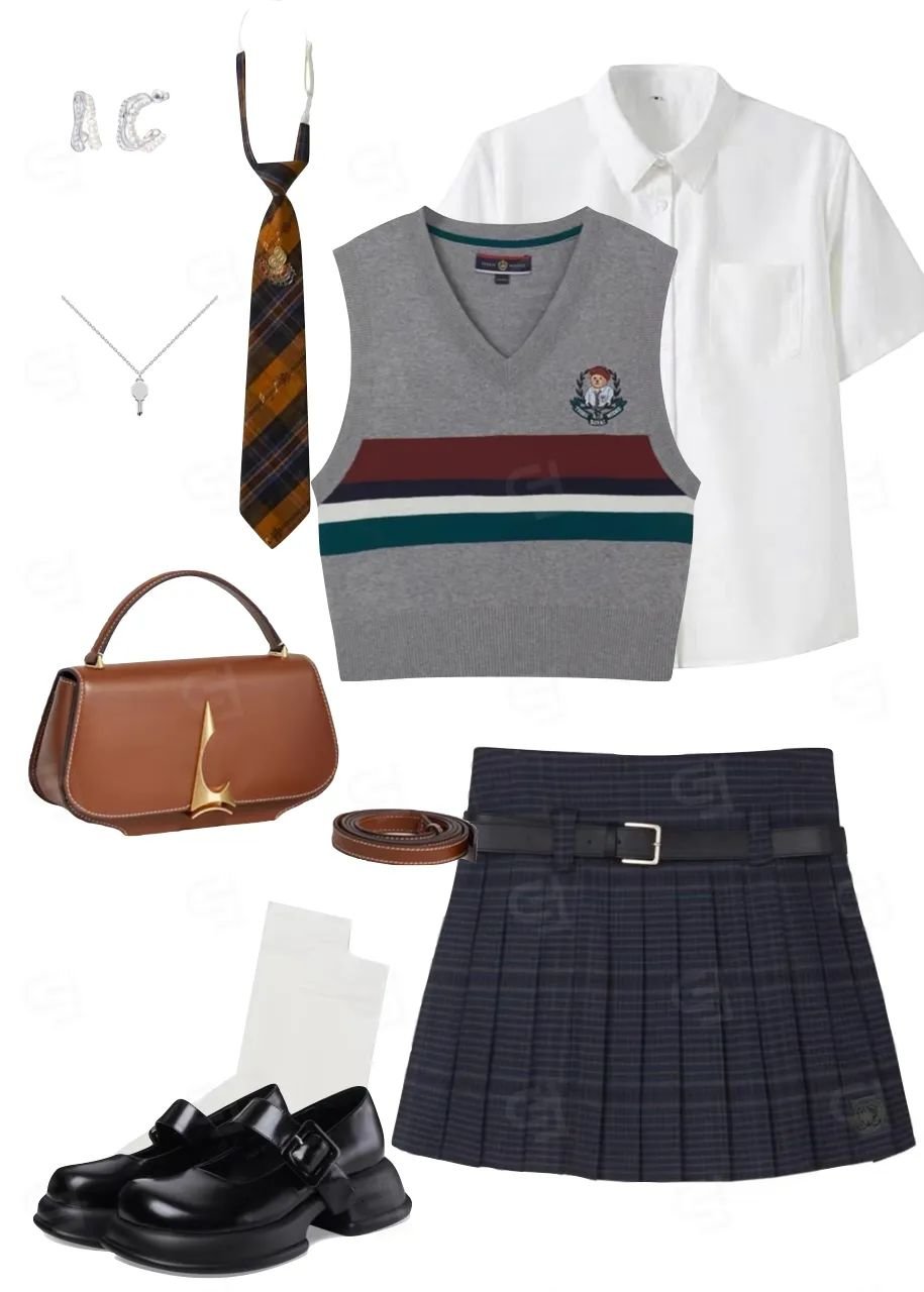我参考了赫敏在学校的穿搭,给大家做了一套学院风 LOOK。