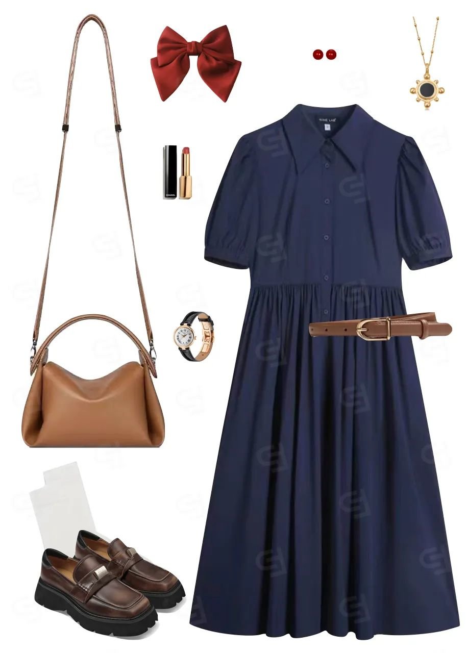 藏青色的裙子,就是琪琪的标配啦,乖巧的翻领配合不夸张的灯笼袖,有种低调的神秘感。