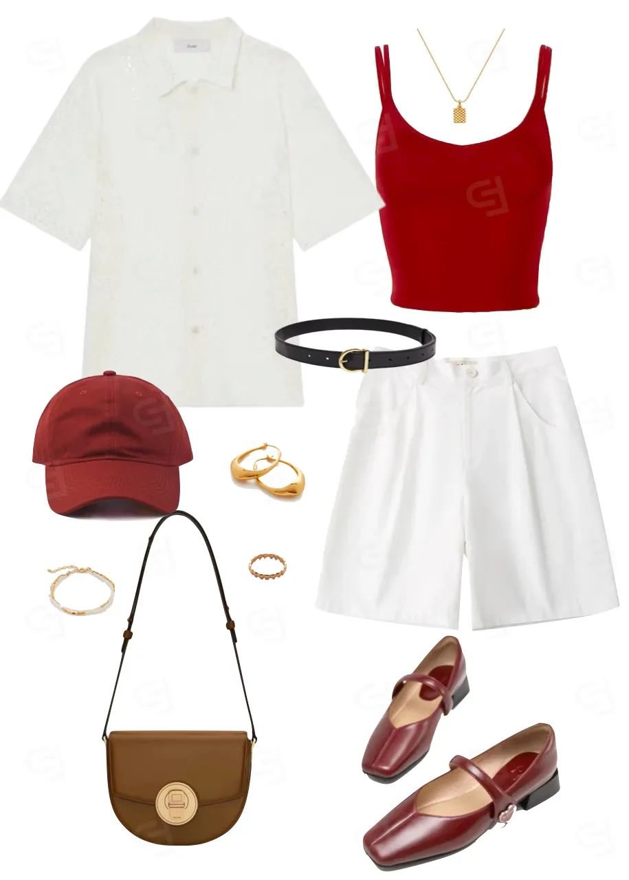 里面够耀眼了,外套和裤子就都用了低调的白色,「红+白」的组合,清爽热烈超适合现在呀!