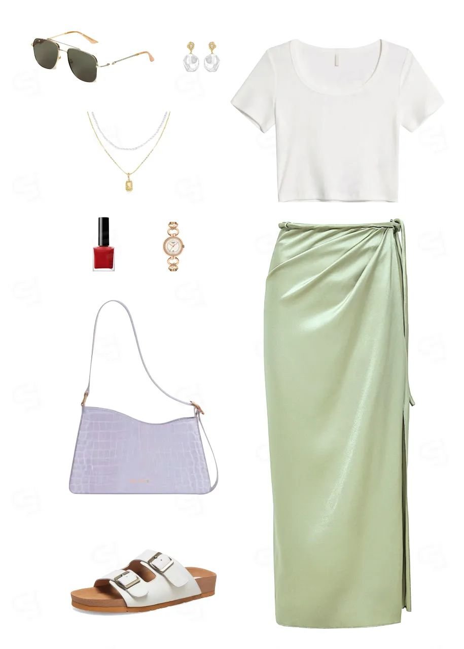 我就以这个画面为灵感,给大家做出了一套优雅松弛的 LOOK。