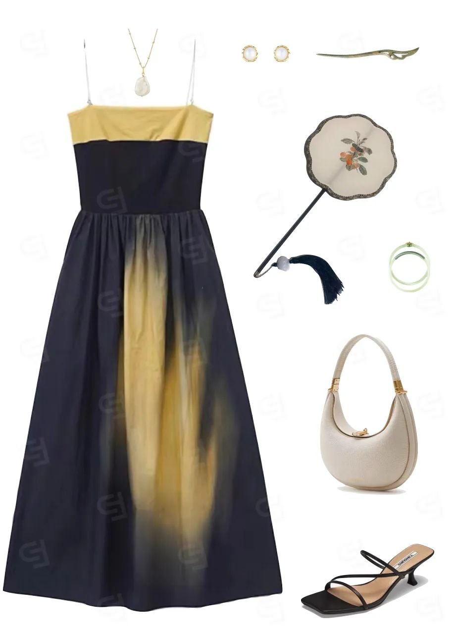 主体单品我选了件黑黄晕染的连衣裙,有艺术感又不会花哨,朦胧美满满。