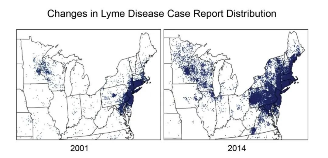 按照美国疾控中心的分析,2022年该国约有47.6万人感染莱姆病,隔壁加拿大在2021年也报告了2851例病例。据报道,加拿大首都渥太华超三分之二的社区曾检测出携带伯氏疏螺旋体的蜱虫。