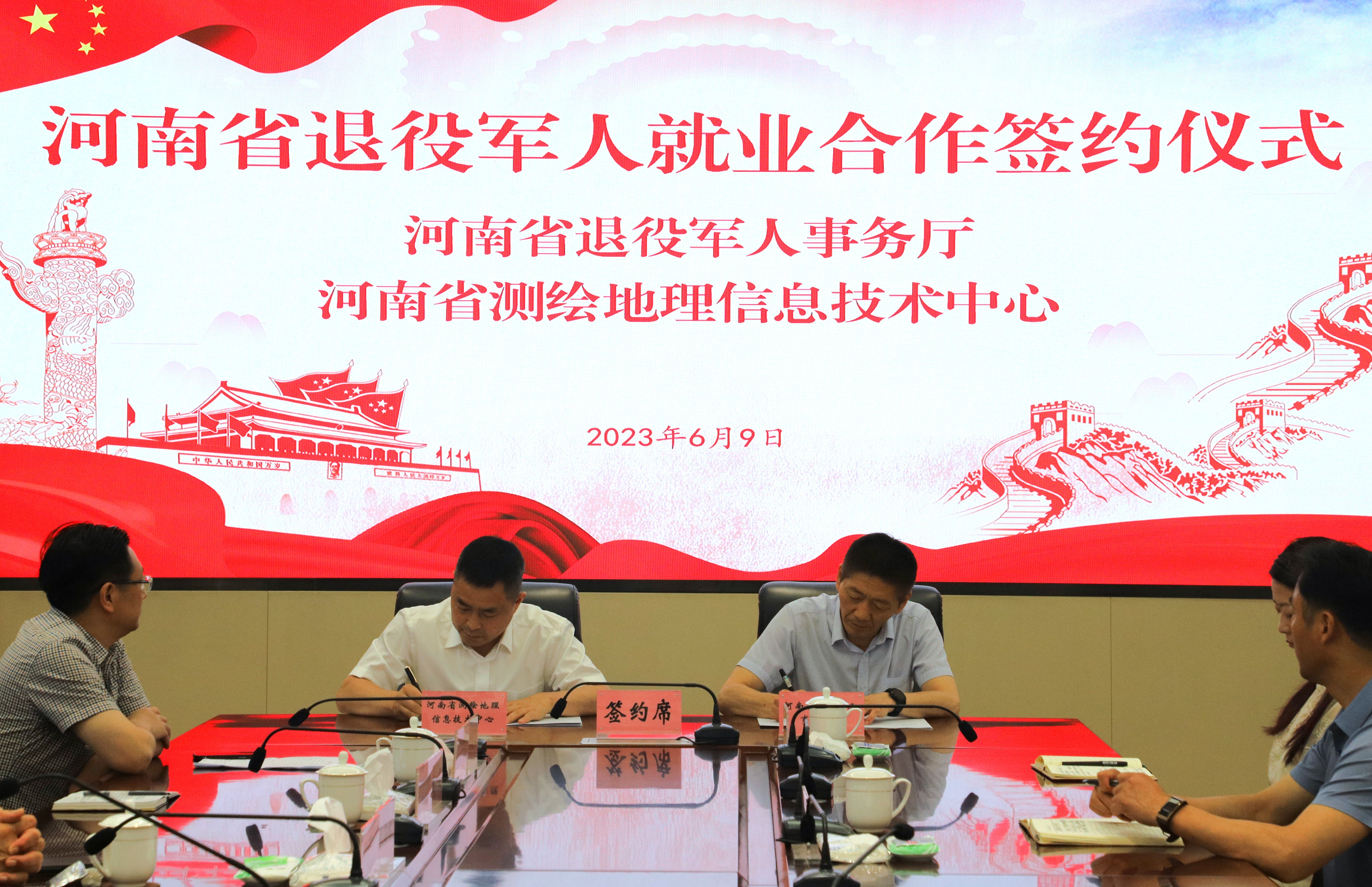 河南省退役军人事务厅与河南省测绘地理信息技术中心、河南省餐饮与住宿行业协会、郑州食品药品监督协会、郑州交通企业行业协会、老家河南集团、上海星辉酒业有限公司、郑州灵宝经济文化促进会等7家企业、行业协会签订就业合作协议,为河南省退役军人提供退役就业创业保障。