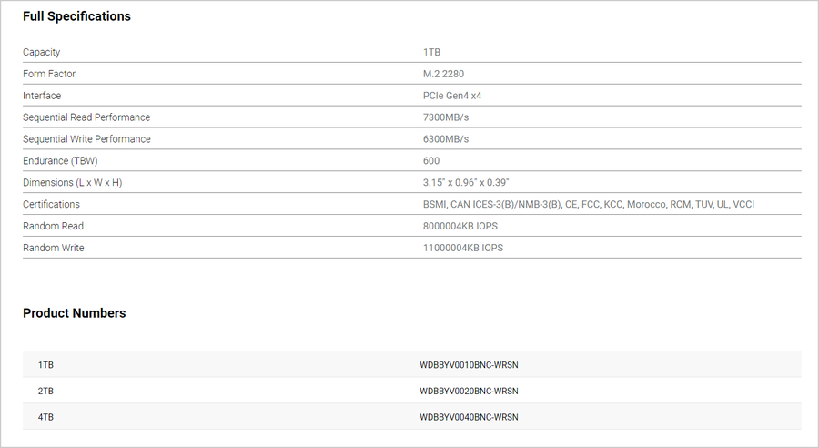 WD Black SN850P PCIe4.0固态硬盘提供有3种容量版本,包括1TB版本(WDBBYV0010BNC-WRSN)、2TB版本(WDBBYV0020BNC-WRSN),和4TB版本(WDBBYV0040BNC-WRSN)。