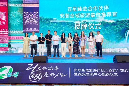 为陕西华山智慧旅游商务科技有限公司、中旅华山旅游有限责任公司、大长安文旅西安十三朝文创、林城假期贵州专线、西安大旅咖国际旅行社有限公司授予“五星臻选合作伙伴”荣誉称号;为贪吃小鹿、理理之、暖大仙、舒婷同学、一朵小cici五位自媒体达人授予“安顺全域旅游最佳推荐官”称号。