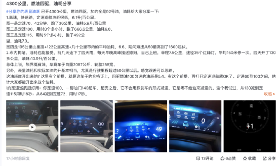 在纯燃油车型中,油耗的表现也能让很多的车主表示满意,其实不难发现哪怕是纯燃油的车型在路况较好的情况,四驱版的车型甚至也能跑出6-7L/100km。