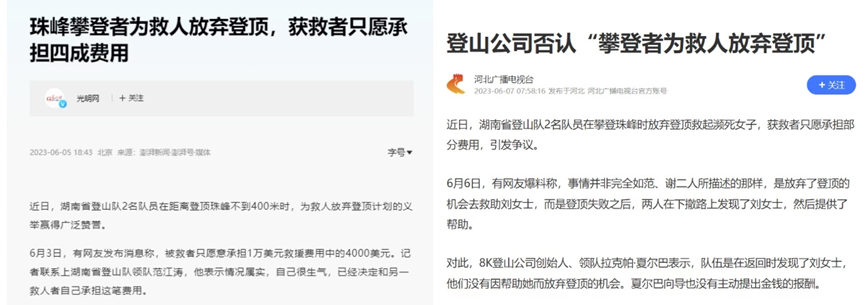 4月12日,三名夏尔巴人在珠峰路上的昆布冰川失踪;5月18日,中国登山者陈学斌遇难。#珠穆朗玛峰凌晨两点还在堵#、#珠峰攀登者为救遇险者放弃登顶#等话题相继登上微博热搜,围观者在争议中揣摩着海拔8000米之上的人性温度。