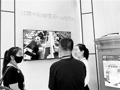 由腾讯SSV数字文化实验室打造的“北京中轴线时空舱”4D时空产品亮相展区。时空舱是“数字中轴”项目的核心模块,通过腾讯数字孪生、云渲染等技术,将现实世界的中轴线搬到了云端。以4D时空再现中国古都的历史沿革,展示北京中轴线七百多年来延续不断的脉络变迁,并用故事详解北京中轴线的选址和规划由来。现场参观的邓小姐告诉北京青年报记者:“我不仅云游了北京,还通过‘时空舱’感受了北京城的时代变迁,北京展台科技感满满。”