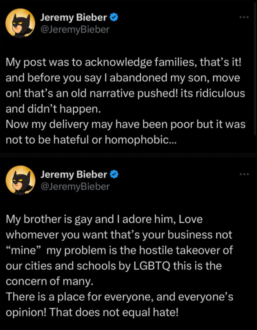 加拿大流行王子 Justin Bieber(贾斯汀·比伯)的父亲 Jeremy Bieber(杰里米·比伯)今日发文: