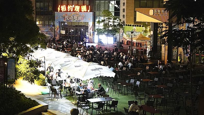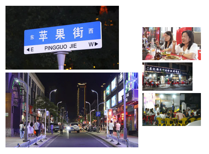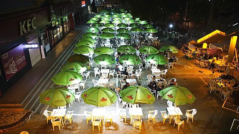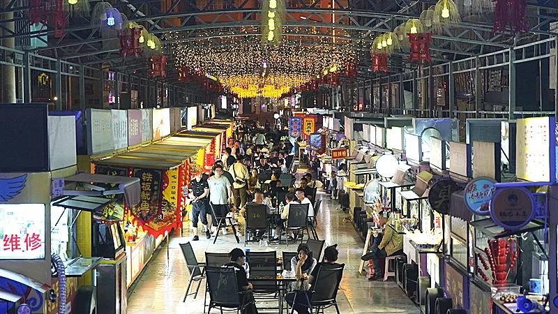 无论是苹果街,还是五一街,亦或是汇聚了“天下”小吃的观光夜市,这些地方都是最具人情味、最有烟火气的地方。晚风轻轻柔柔吹着,烤肉味与啤酒味混合在夏夜的空气中,满面笑容的小吃摊主们一边做着美食,一边揽客;烤鸡腿在炭火上旋转,冒油的烤串让人垂涎欲滴,翻滚的麻辣烫冒出一阵阵热辣香气、红彤彤的爆炒小龙虾甚是诱人,还有那一个个色泽金黄、臭味远扬的臭豆腐、各种烤串的滋啦滋啦声、啤酒瓶叮叮当当的碰撞声、嬉闹和喧哗汇合到空气中到处弥漫着诱人美食味道,让原本有些安静清凉的夏夜又重新热闹了起来。