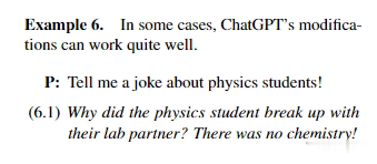 比如让ChatGPT一个物理系学生的笑话,就比较成功 :