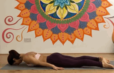 感受肩胛骨向内靠近脊柱,胸腔打开
