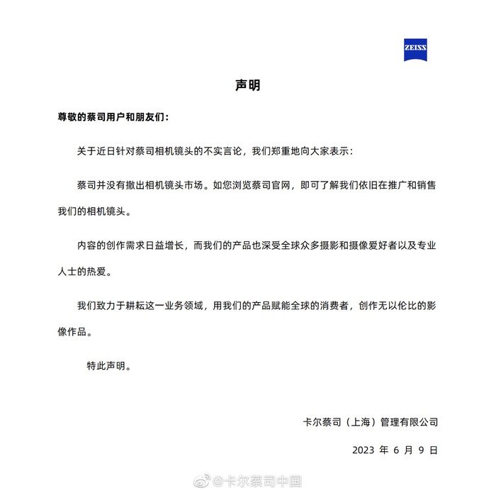 细看,相关媒体社交平台上的蔡司官号,你也能从中一窥端倪,官方的内容多为环境保护、文物研究、计量测量、手机蔡司影像等等内容,当然也有一些电影镜头的相关资讯,但适用于单反、微单的镜头资讯已经几乎不可见。