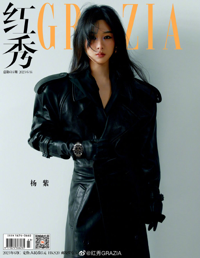 杨紫登《红秀GRAZIA》新期封面大片,全黑造型,酷感拉满,全新风格的紫妹~