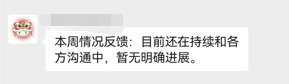 今年6月1日,南岸建委方面就该处交房问题,组织沟通。6月9日,陈女士说当时现场说的“一周给予回复”,暂时也没有新的进展。