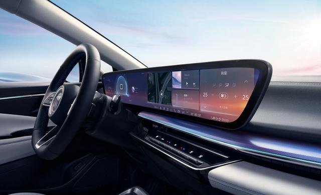 内饰方面,别克E4的座舱布局与别克E5几乎一模一样,采用了最新的家族化设计。简洁的中控台搭配大连屏,营造出极强的科技氛围。而这款车的30英寸一体弧面6K双联屏无论在显示效果还是功能方面都表现出色,在当前合资品牌众多车机当中,说一句一线水准也没什么错。