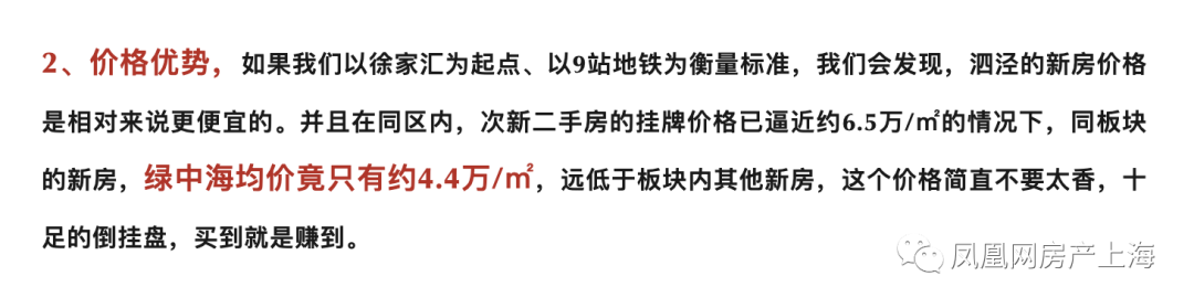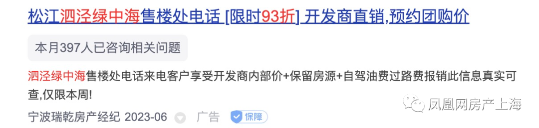 日前一则广告吸引了小凤凰的注意,“泗泾绿中海,限时93折,预约团购价……”