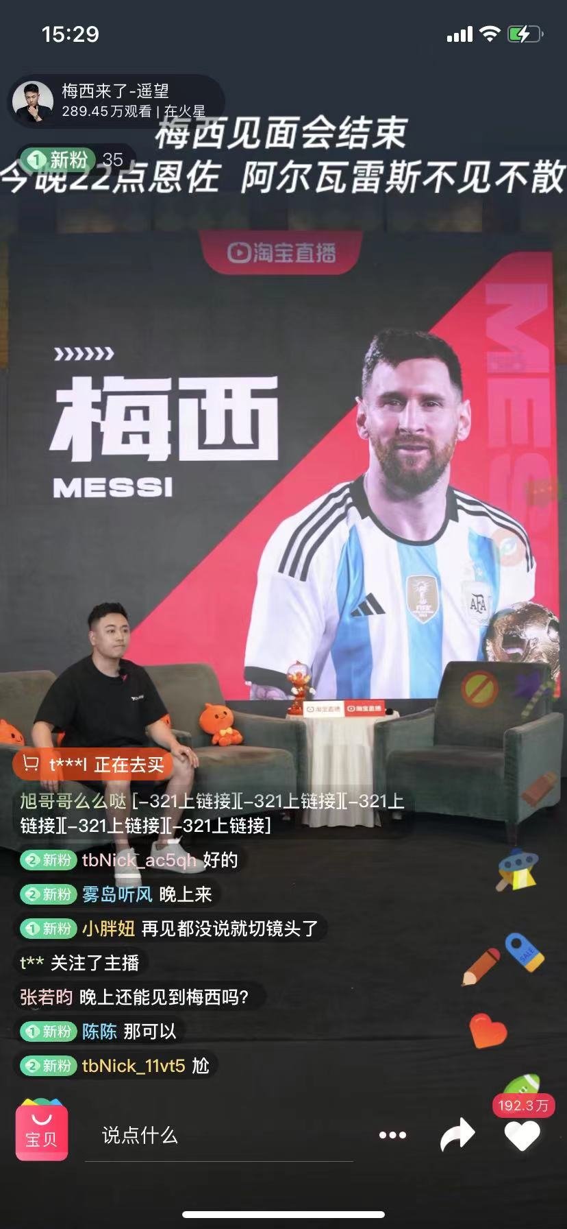 今日下午,遥望旗下淘宝主播李宣卓直播间14点开启直播。15点03分,梅西进入直播间,15点16分钟与主持人以及主播合影留念后离场。此次直播一共250多万人次观看,梅西出镜时间一共十几分钟。