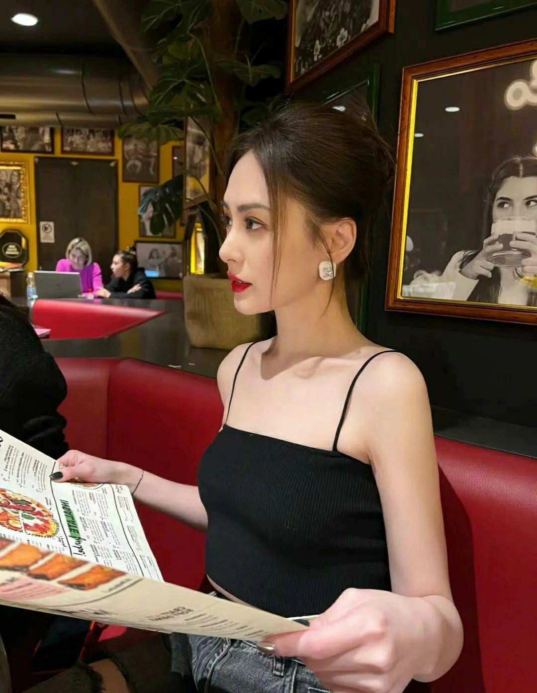 类似阿娇的日常穿搭,这件细肩带的吊带,我就很推荐!👇