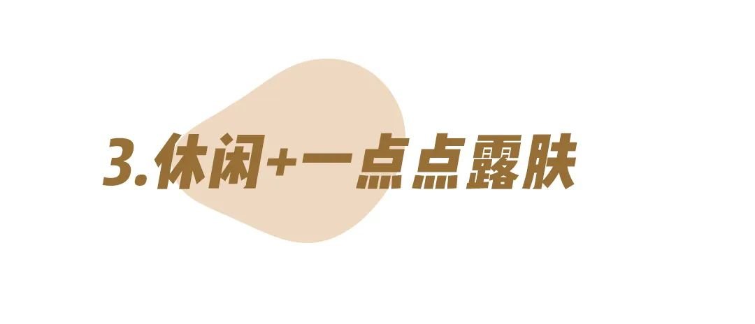 休闲+一点点露肤,休闲风与心机小性感兼顾得刚刚好,才不会显得刻意,耶不会显得低俗,相比于很贴身的裙子而言,这种搭配反而会有一种随性感,逛街、约会都合适,小性感又不夸张~