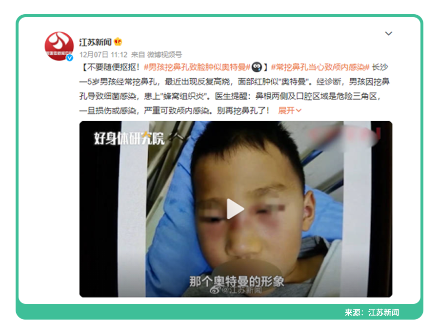 之前有个小男孩挖个鼻子,挖出了颅内感染!