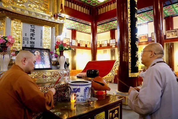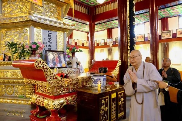 2023年6月10日,中国佛教协会副会长、湖南省佛教协会圣辉会长一行在九华山佛学院费业朝老师的陪同下前往九华山塔院祭拜恩师仁德长老。