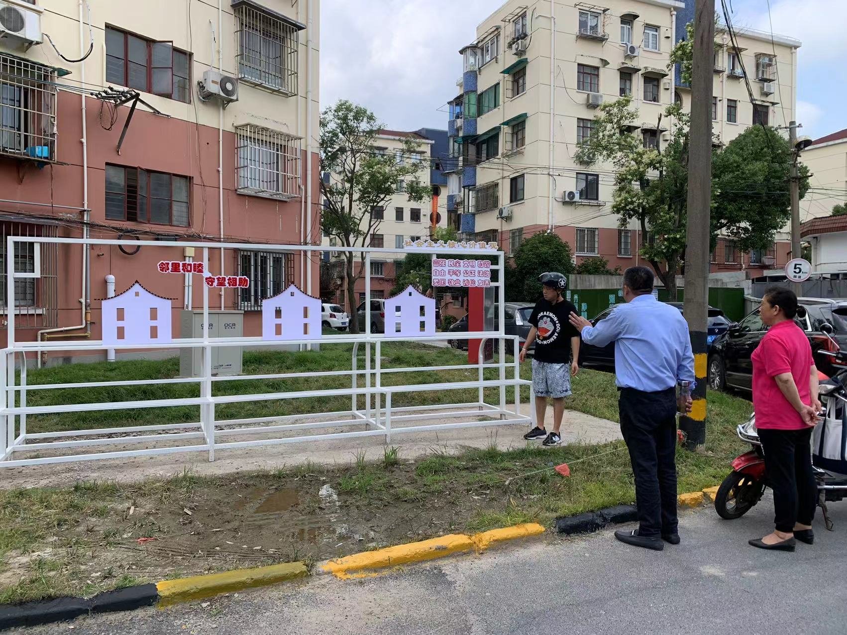 参与“团购”的星苑小区业委会、居委会与物业共同商议绿化角美化工程