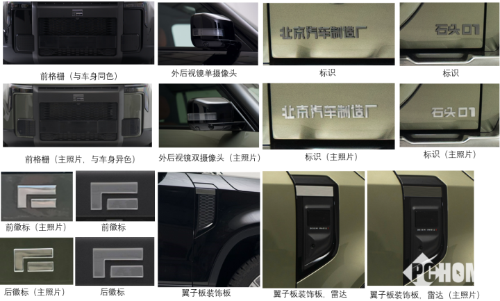 外观方面,石头01的前脸采用了大尺寸的前格栅设计,展现出强烈的视觉冲击力。而独特的Y字形灯组设计,更是为整体外观增添了独特的风采,令人印象深刻。为了进一步提升车辆的硬朗感,石头01采用了夸张的包围和轮眉设计,使整体车身更具动感和力量感。这种设计手法不仅增加了车辆的视觉宽度,还展现了强烈的肌肉感和稳重感。整体而言,石头01的外观与路虎卫士110颇为相似。