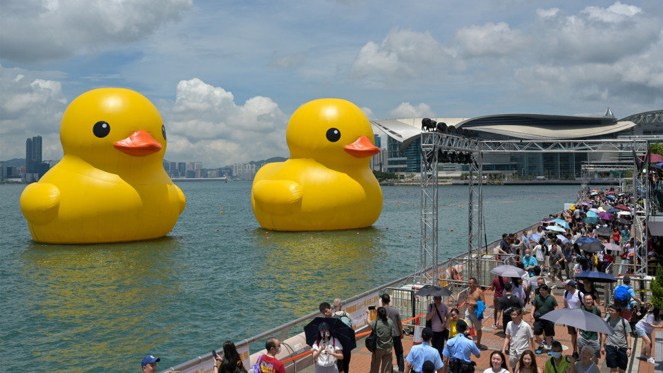 由荷兰艺术家霍夫曼制作的黄色巨型橡皮鸭,相隔10年后第二度访港,于本月10日起正式展出,主办方早前表示,展期预计约两星期。